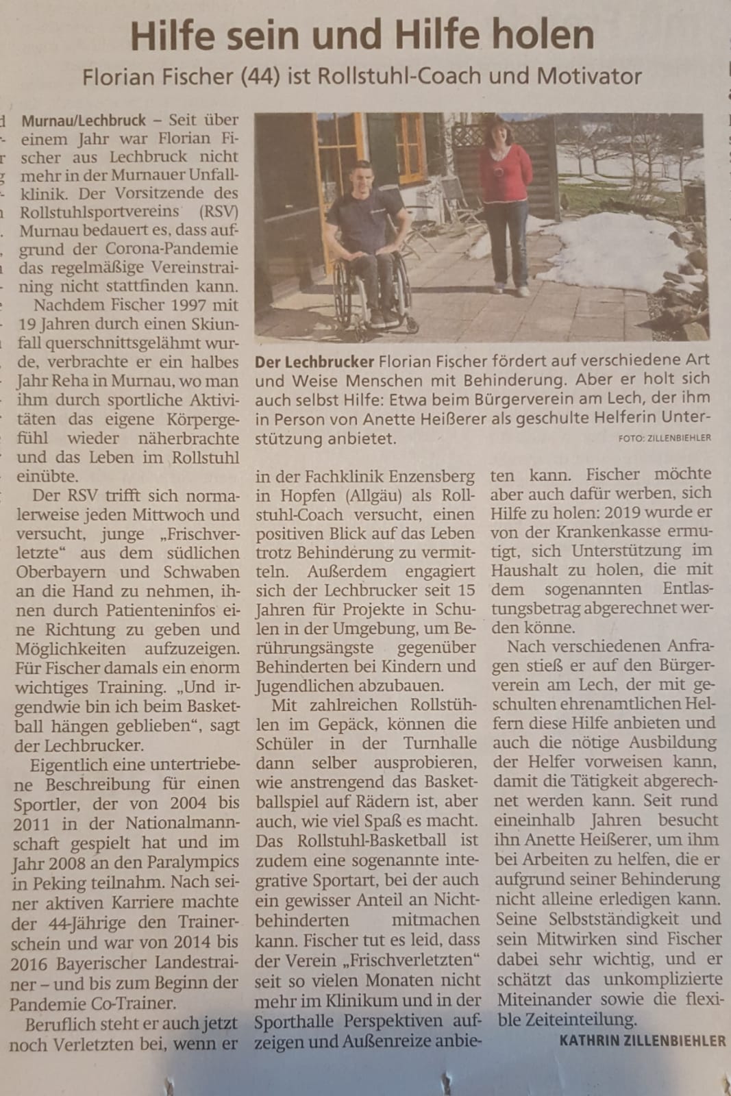 Der Lechbrucker Florian Fischer (44) ist Rollstuhl-Coach und Motivator für Menschen mit Behinderung.
